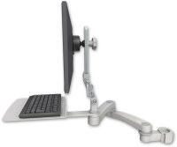 The Ultra 510 LCD arm allows the full articulation of the LCD. This 510 folds up and extends 20" (50.8cm) from the mount to the LCD, having two articulating 11" (27.94cm) arms. Two handles next to the monitor tighten the monitor into position. The monitor can be adjusted 4" vertically on a slider.