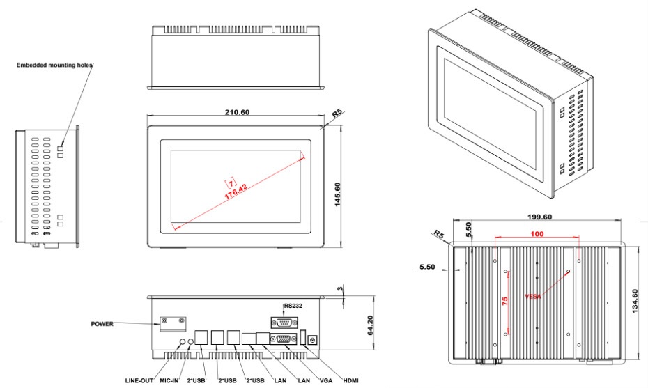 7 Inch Fanless Panel Mount Touch Screen Computer